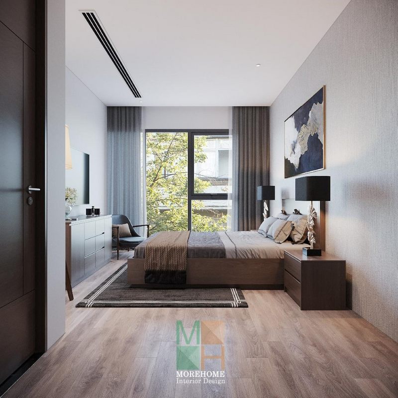 Kiến trúc nội thất phòng ngủ master hiện đại với các thiết bị nổi bật tiện nghi.