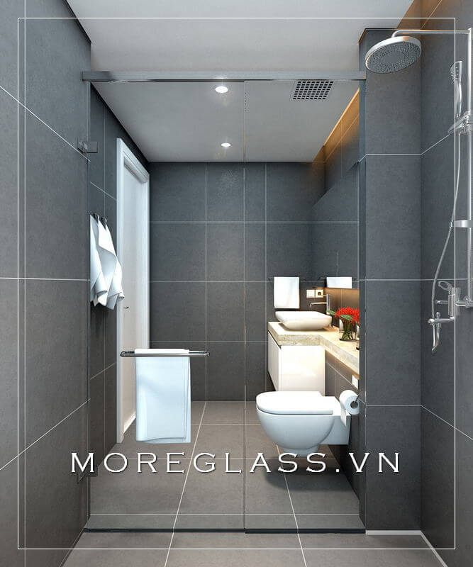 Mẫu thiết kế nhà tắm kính cao cấp với kính cường lực trong suốt giúp tạo nên vẻ đẹp tinh tế, sang trọng mà không làm cho phòng tắm nhỏ cảm giác bí bách.