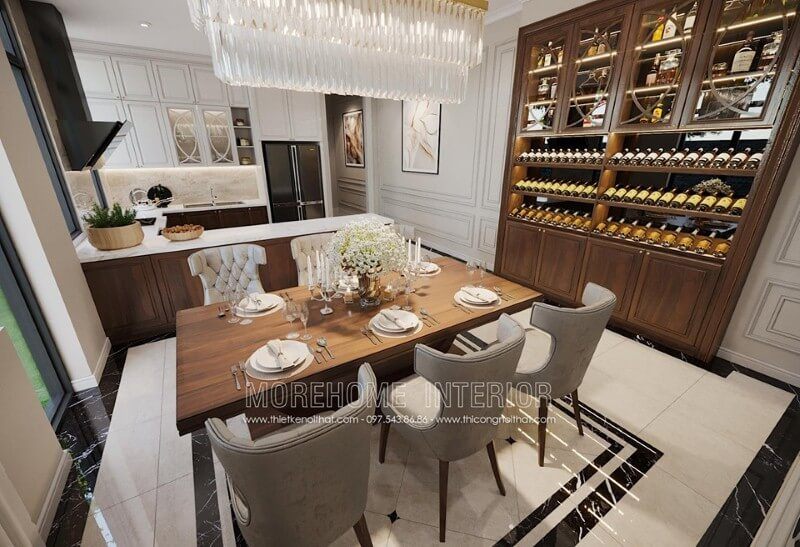 Ghế bọc nhung cao cấp với kiểu dáng độc đáo sẽ làm nên một không gian đẳng cấp cho phòng ăn.
